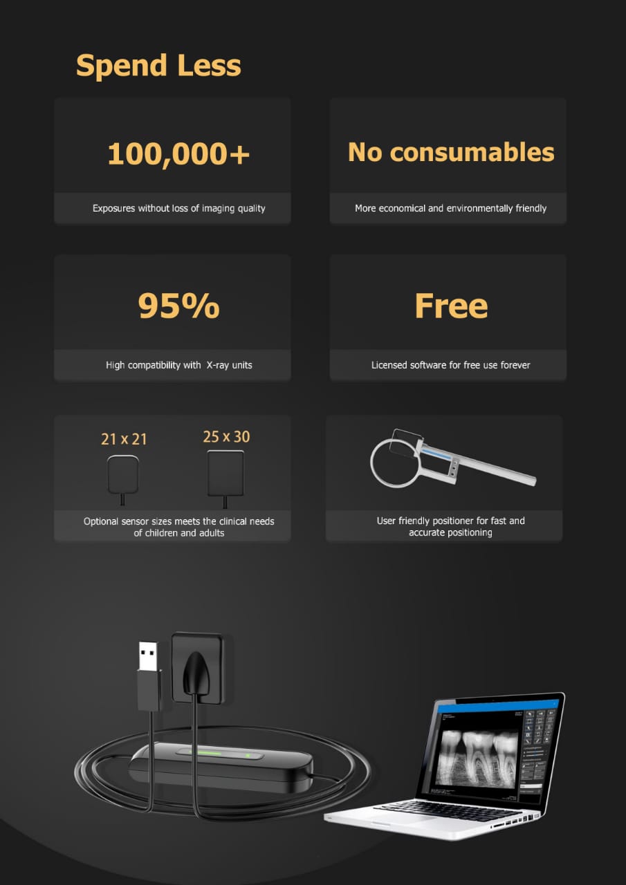 𝐋𝐨𝐰𝐞𝐫 𝐑𝐚𝐝𝐢𝐚𝐭𝐢𝐨𝐧 𝐃𝐨𝐬𝐞: This innovative sensor is more sensitive than traditional RVG sensors, which means it can produce high-quality images with less radiation exposure for your patients.